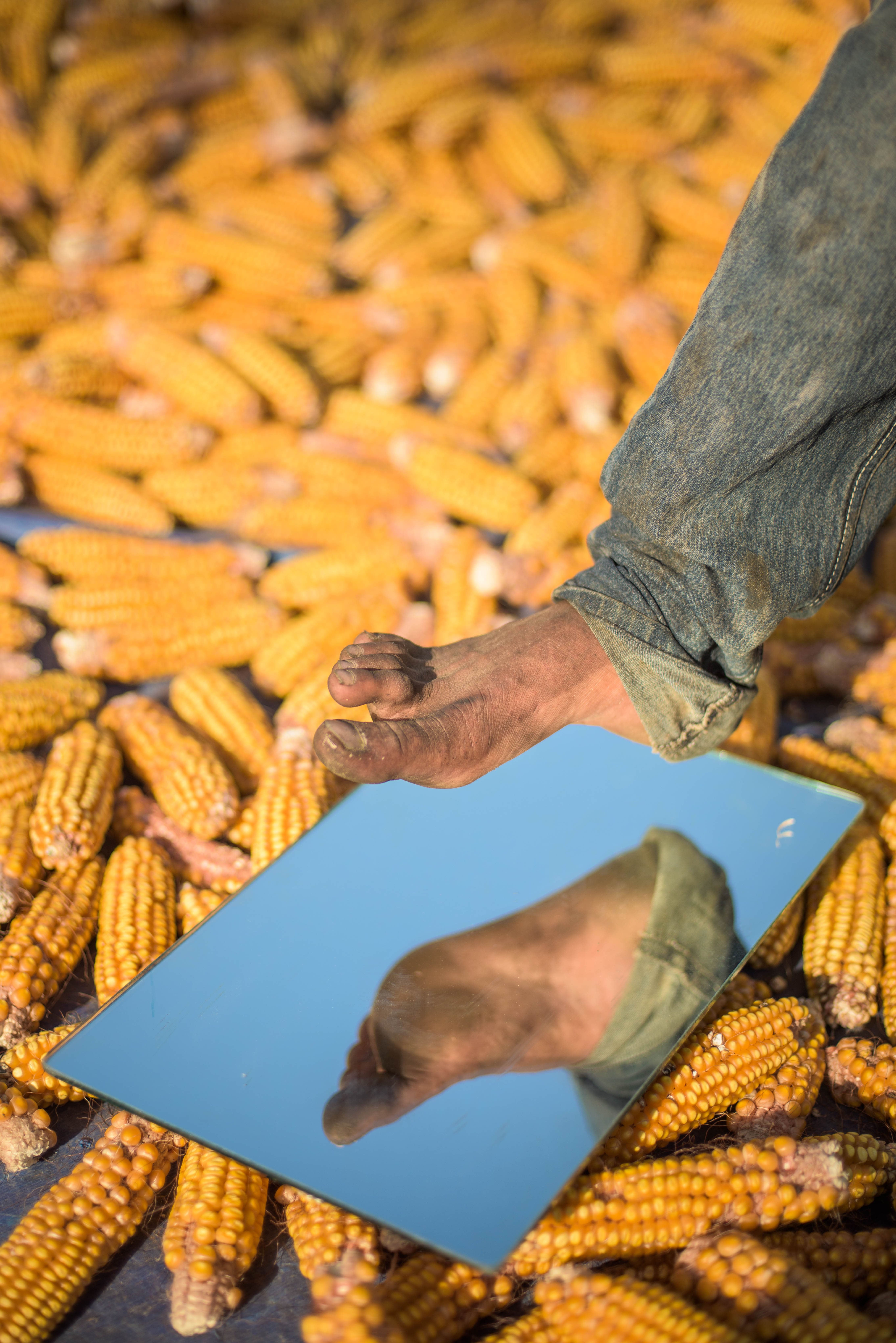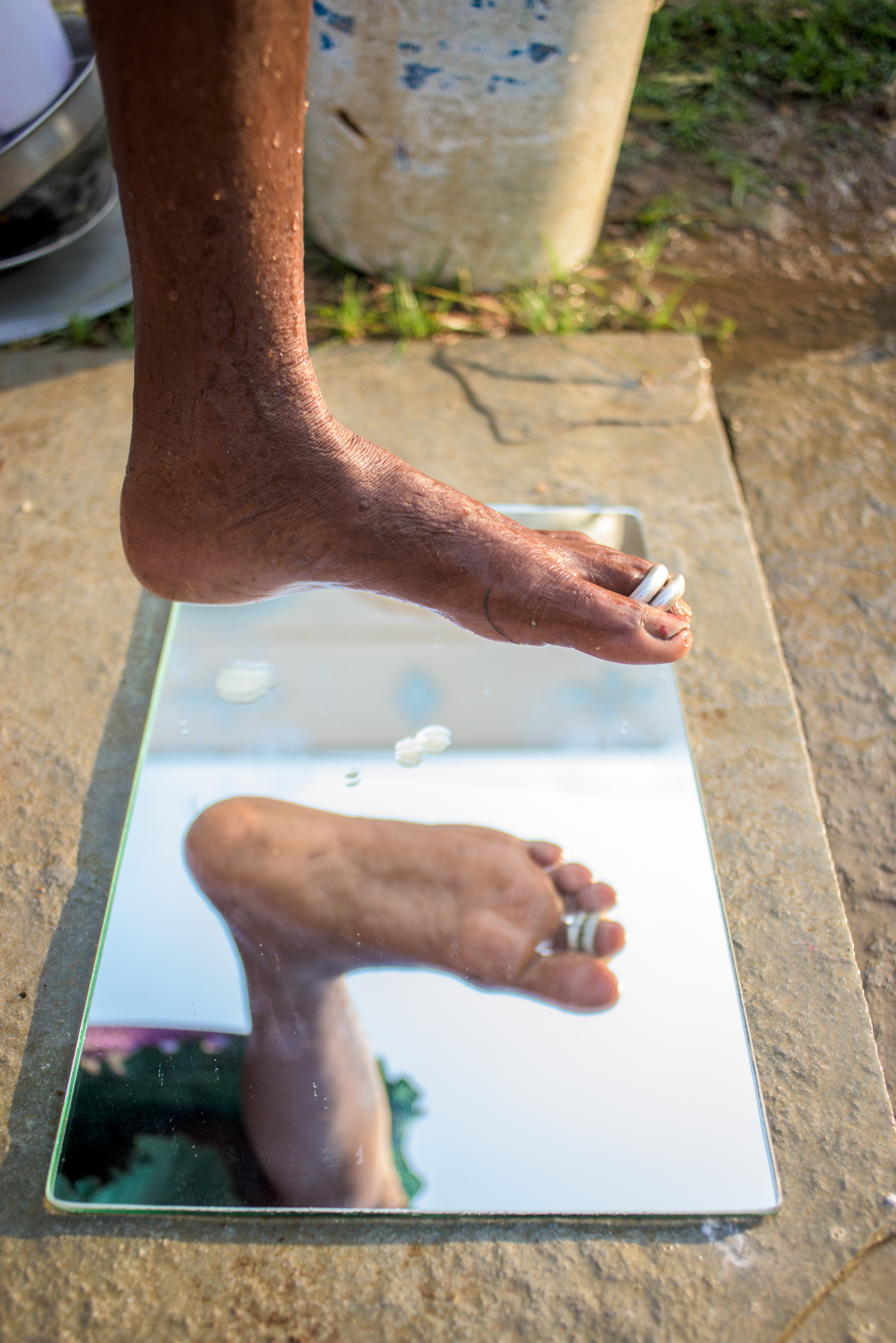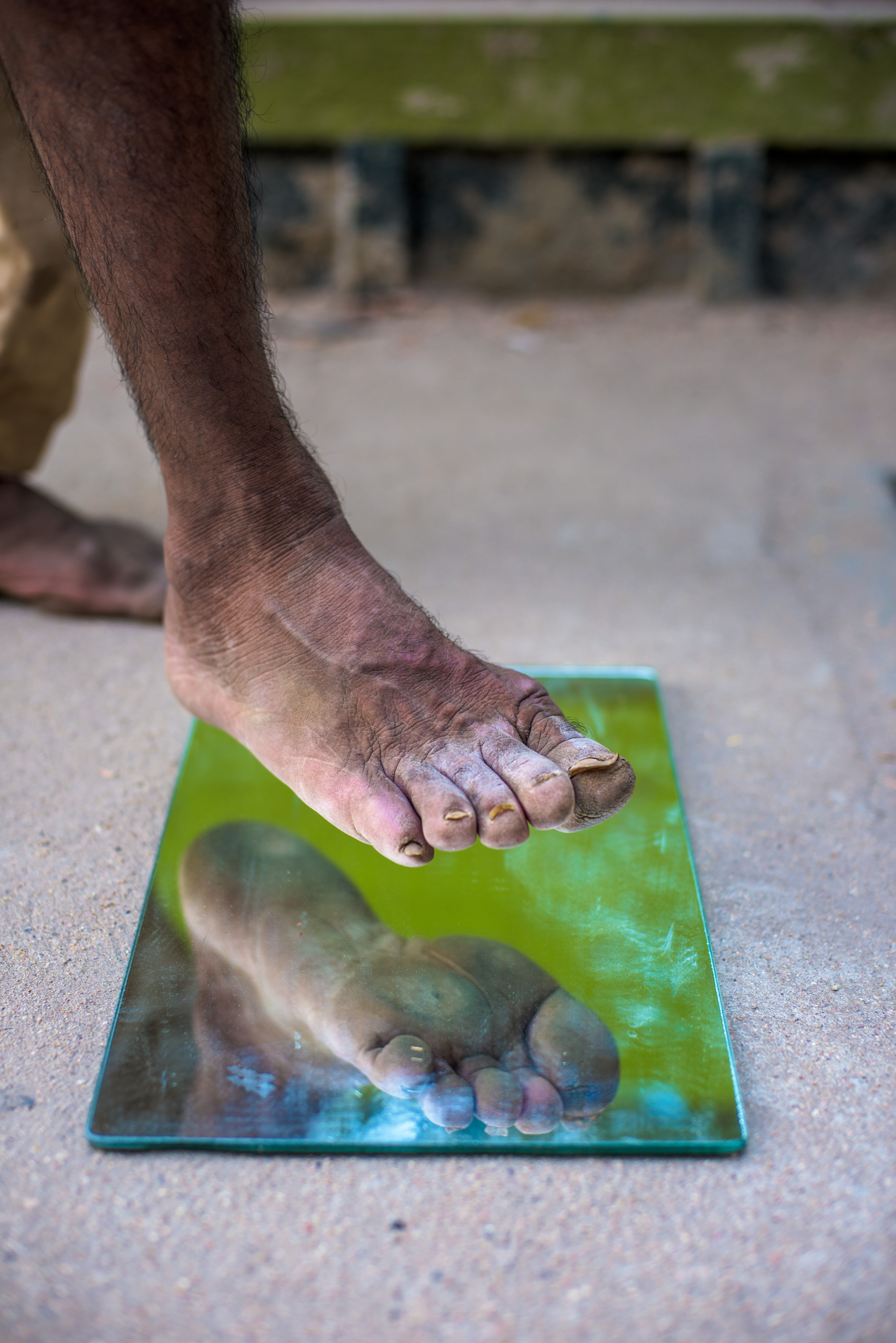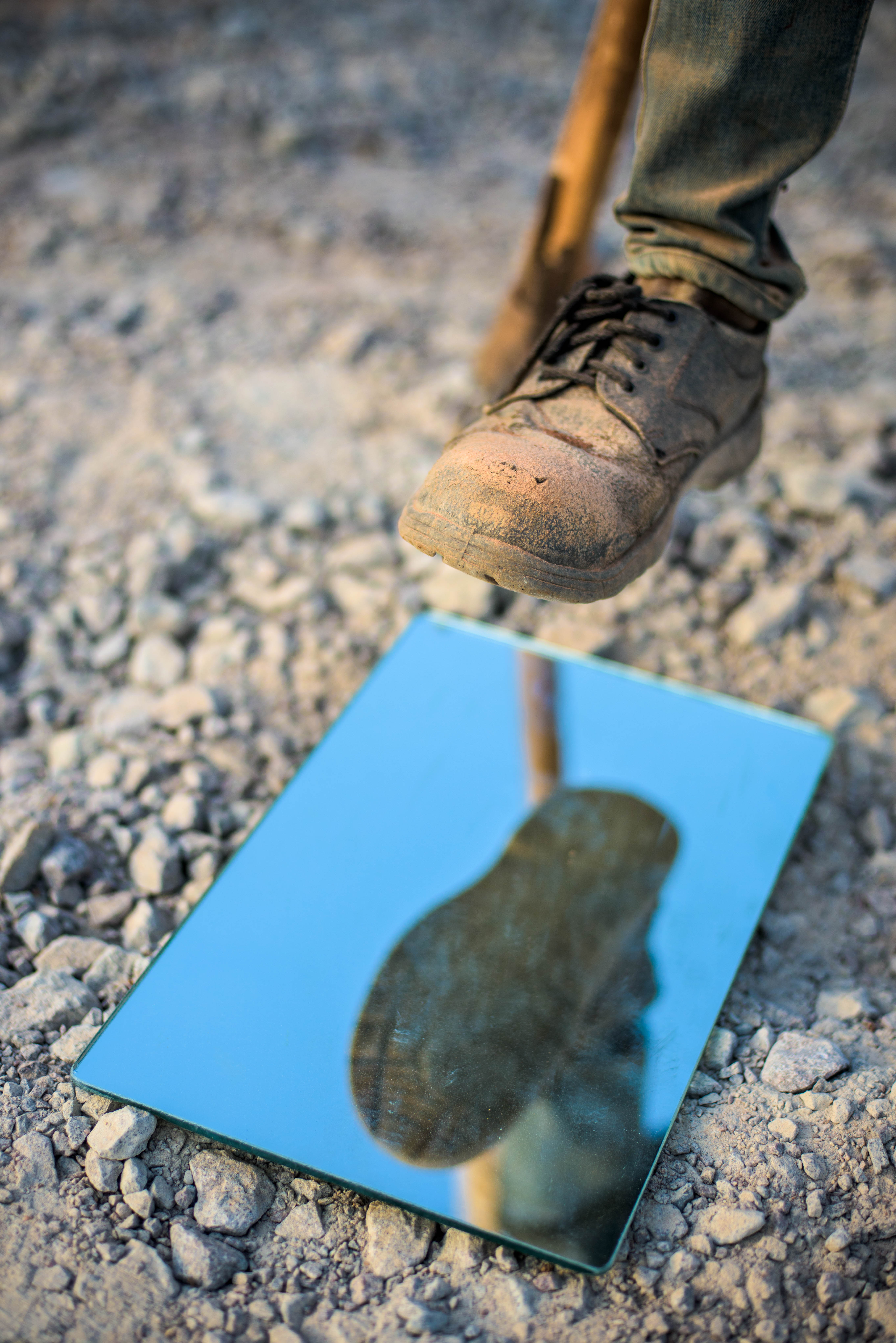 The sole of the foot is the only part of a walking person which is never seen, even when the person is naked. The images show various soles in their natural surroundings, being reflected on a mirror, acting as a frame within a frame; interpreted as viewing the souls through the soles, hence showing us the absolute truth. In the same frame, we also see the imprint it would leave behind; a pattern in their lifestyle.
